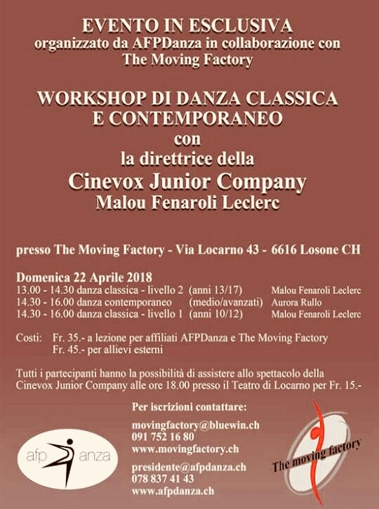24.4.2018 workshop di danza contemporanea con Aurora Rullo presso Moving Factory > clicca qui